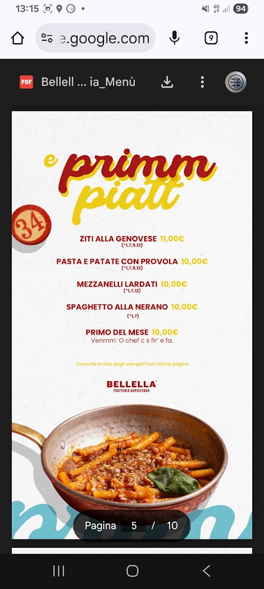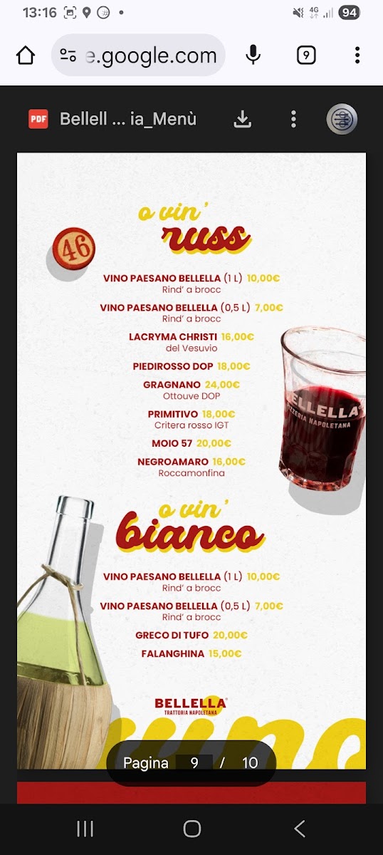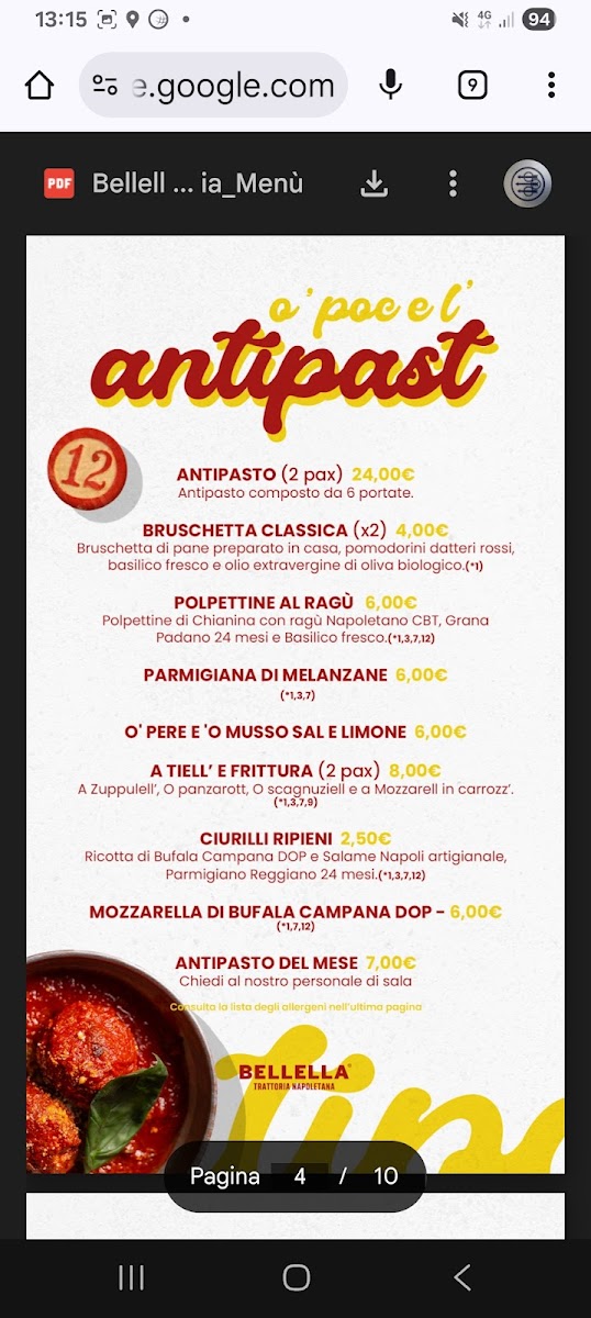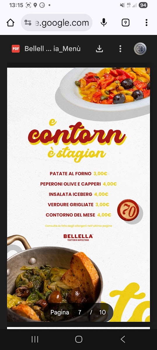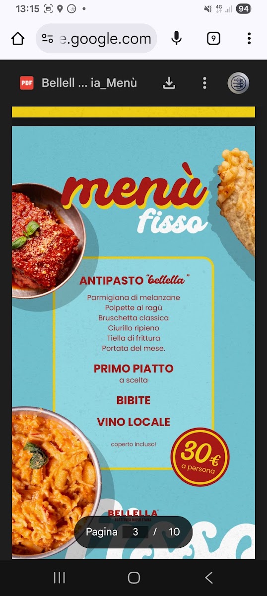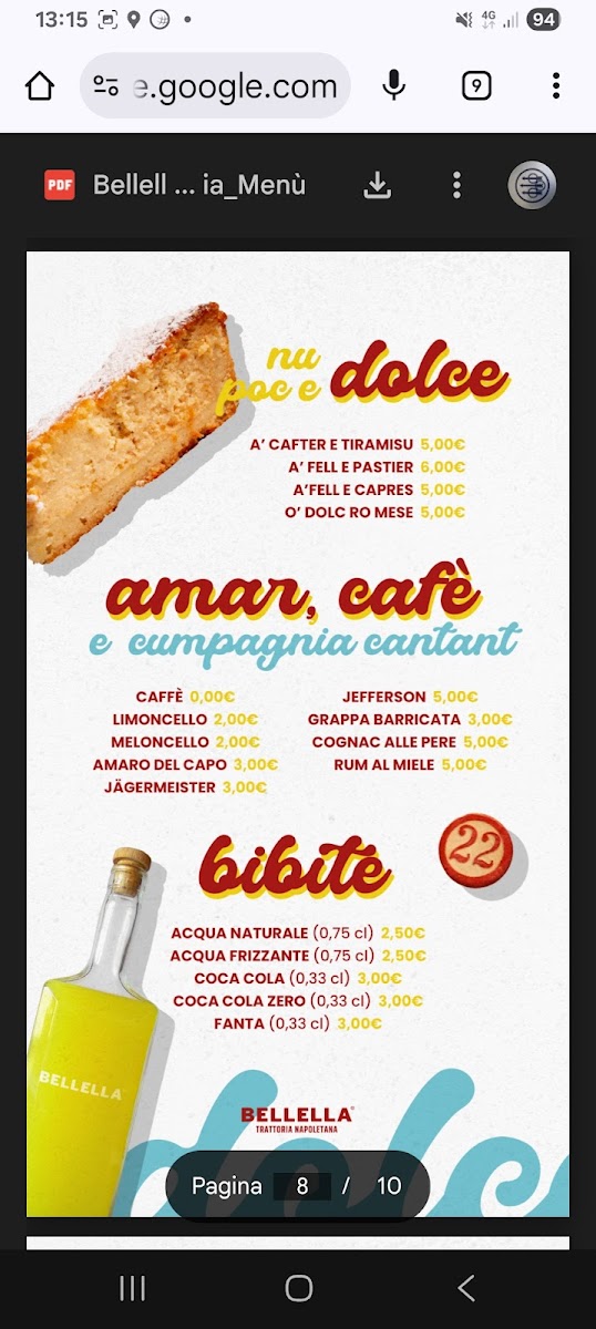 Bellella Trattoria Napoletana Menu